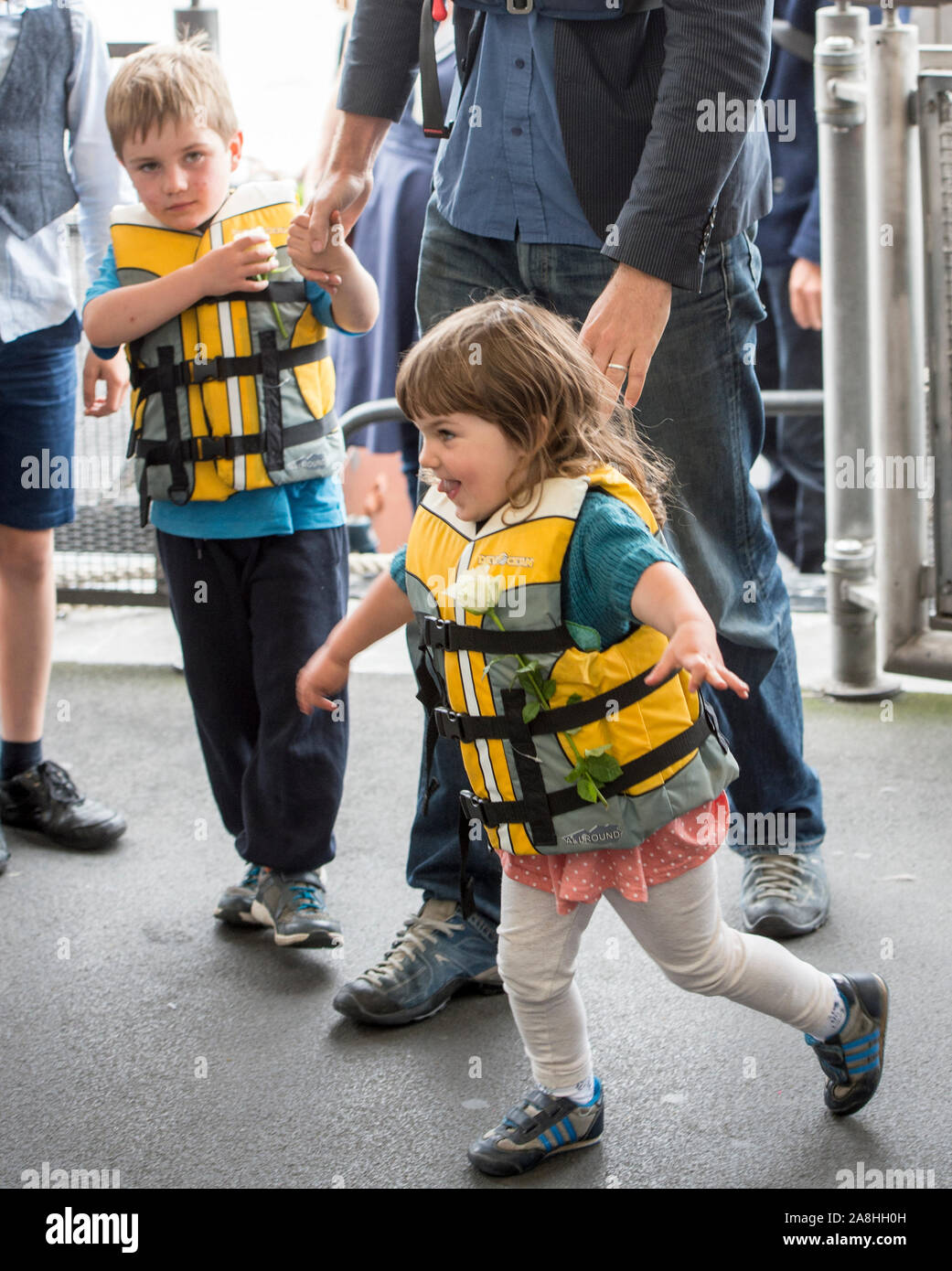 Brendan Cox Witwer Der Ermordeten Mp Jo Cox Und Ihre Kinder Cuillin Und Lejla Hilfe Ein Kleines Boot Ausserhalb Des Unterhauses In Ihrem Gedachtnis Zu Moor Nach Ihrem Tragischen Tod 22 6 2016 Stockfotografie